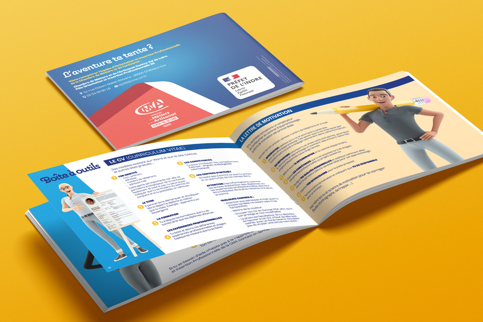 Il n’existait jusqu’ici aucun document regroupant les offres de formation en apprentissage de notre département. Partant de ce constat, les services du Préfet de l’Indre et la Chambre des Métiers et de l’Artisanat nous ont confié la conception et la réalisation d’un guide à destination des jeunes pour promouvoir ce type de formation.