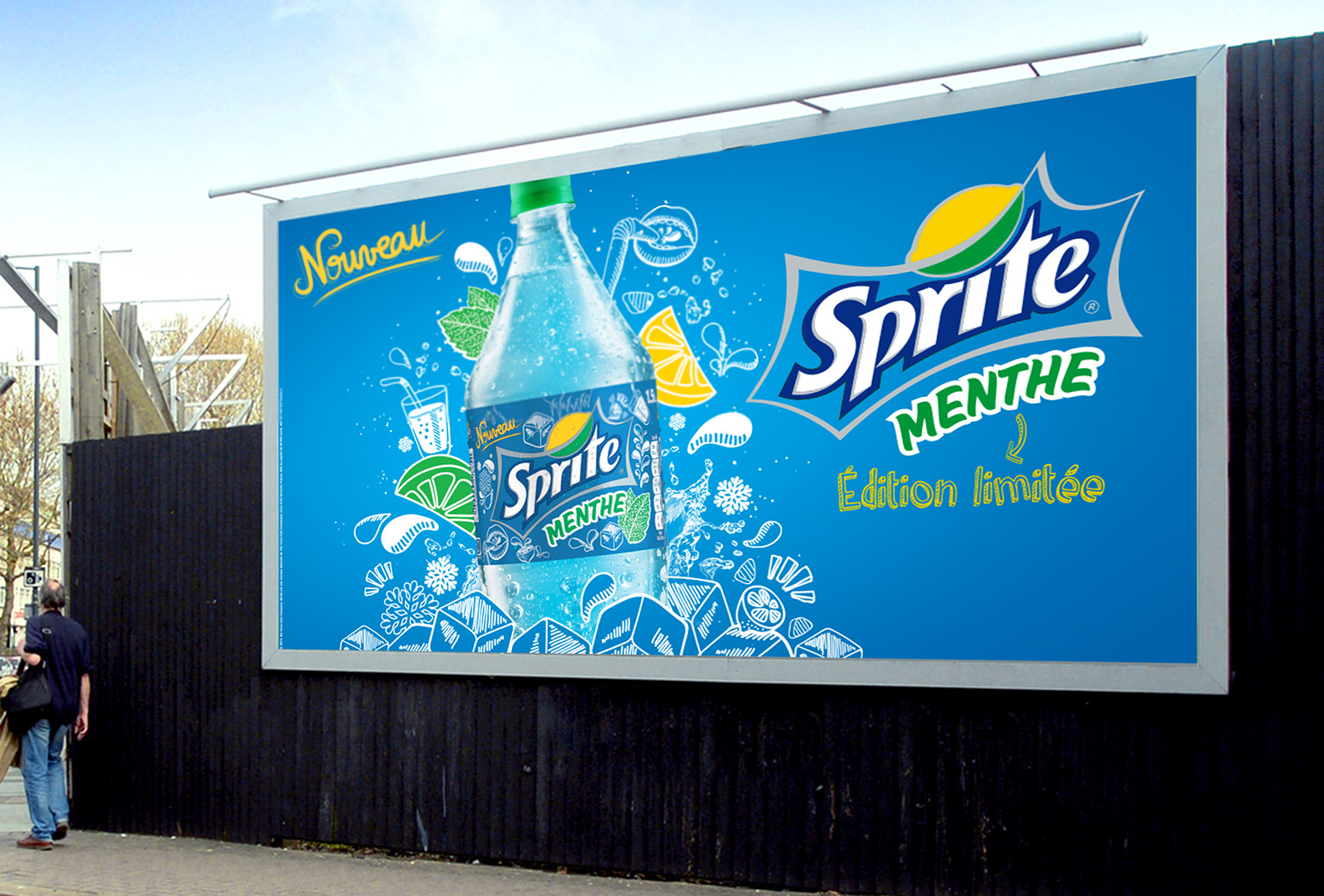 Création d'un visuel pour le lancement de l'édition limitée Sprite menthe, déclinable sur un multitude de supports publicitaires..